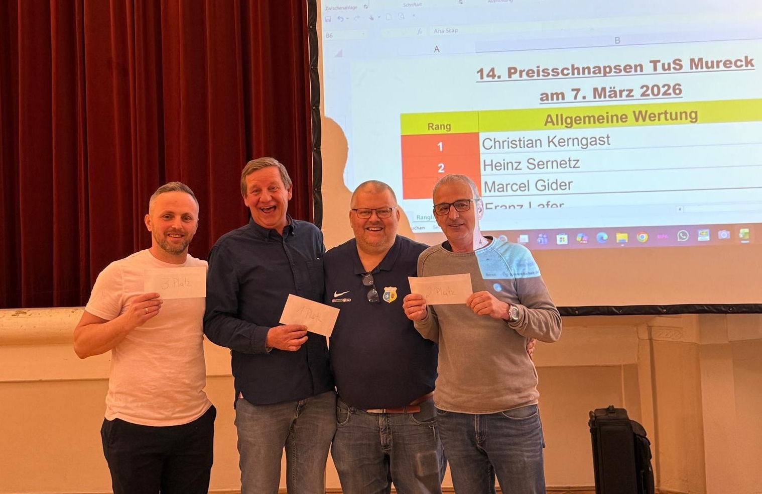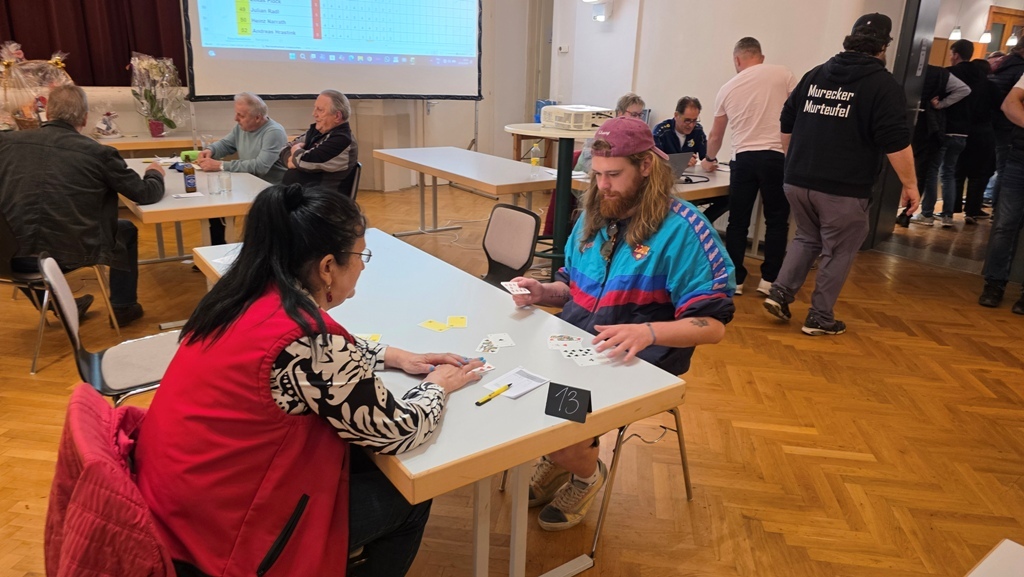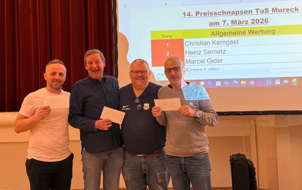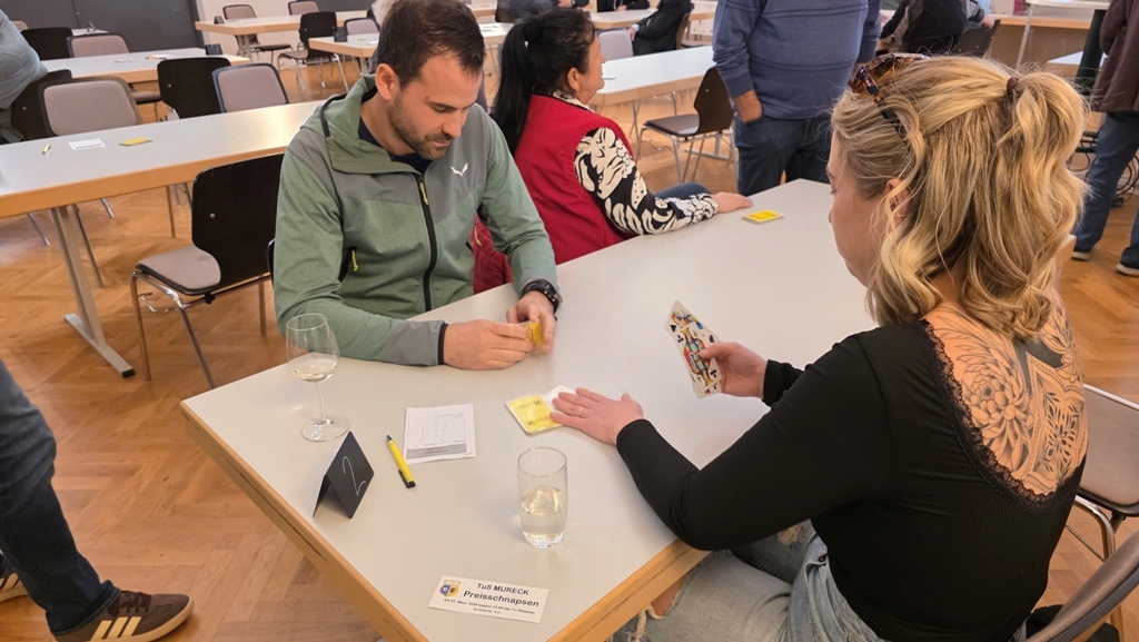 Beim 14. TuS Mureck Preisschnapsen im Kulturzentrum Mureck nahmen am 7. März 2026 insgesamt 61 SchnapserInnen teil. Herzlichen Dank!